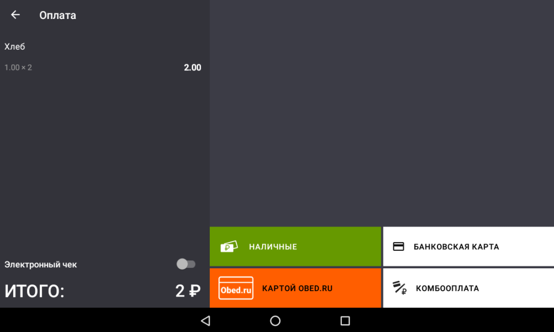 II. В случае, если карта Obed.ru НЕ прокатывается АВТОМАТИЧЕСКИ через кассу.