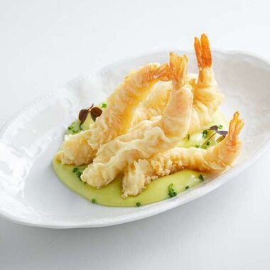 Креветки темпура с соусом васаби