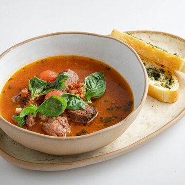 Томатный суп с говяжьей щекой