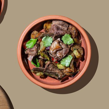 Ребрышки ягненка с овощами и соусом ткемали