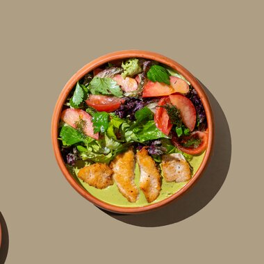 Салат с цыпленком и соусом киндзмари