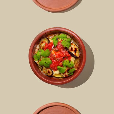 Мусака из растительного мяса и баклажанов