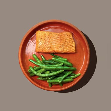 Стейк из лосося с фасолью и соусом дзадзыки