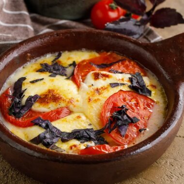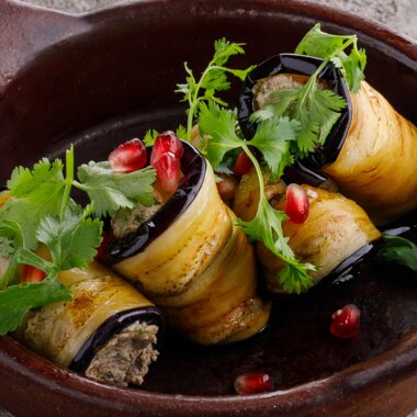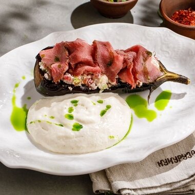 Печеный баклажан с муссом из сулугуни