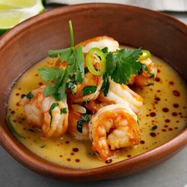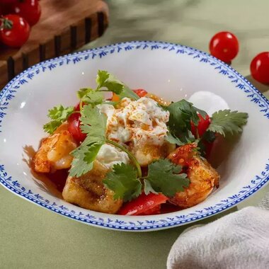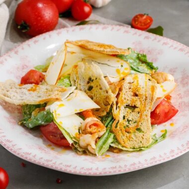 Теплый салат с креветками