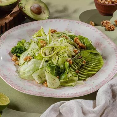 Зеленый салат с ореховым соусом