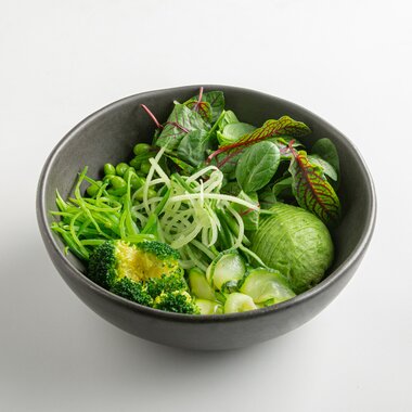 Зеленый салат с кунжутным дрессингом