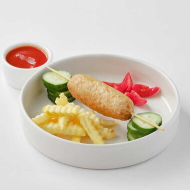 Стрипсы куриные с картофелем фри и соусом на выбор