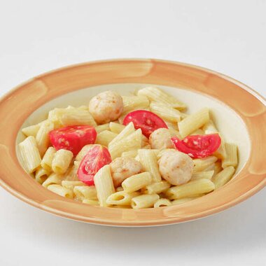 Пенне с куриными фрикадельками и сырно-сливочным соусом