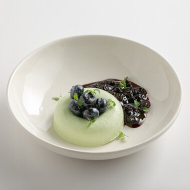 Фисташковая панна-котта со смородиновым соусом