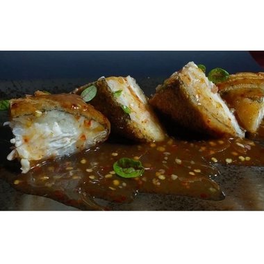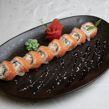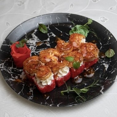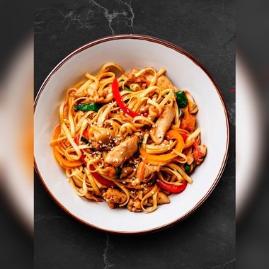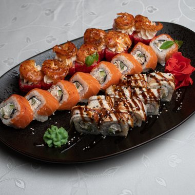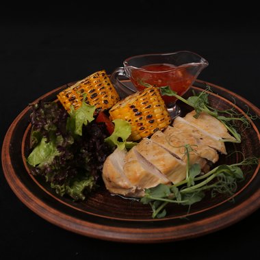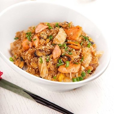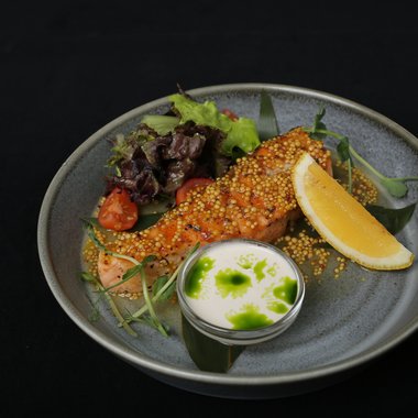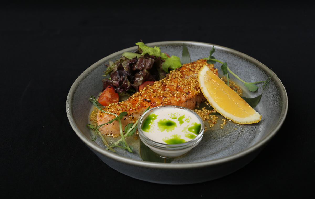 Лосось в апельсиново-горчичном соусе с рисом и овощами