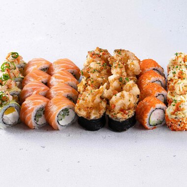 Обращаем внимание, что Соевый Соус, Имбирь и Васаби необходимо добавить в корзину отдельно!