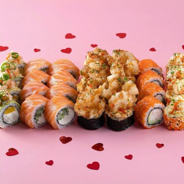Обращаем внимание, что Соевый Соус, Имбирь и Васаби необходимо добавить в корзину отдельно!